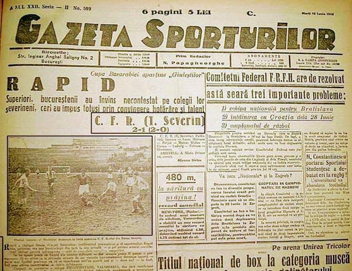 19.07.1942 Bucureşti FC Rapid Bucureşti – Venus Bucureşti 7 – 2