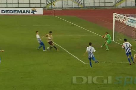 2. …balonul îi joacă o festă de 1 aprilie atacantului bistrițean și pericolul de la poarta lui Irimia se stinge