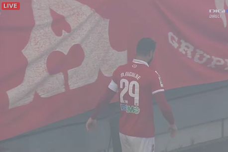 Derby-ul dintre Dinamo și Steaua a fost interrupt în minutul 46, pentru mai bine de 15 minute. Lituanianul Giedrius Arlauskis, portarul oaspeților, a ieșit de pe teren, după ce mai multe torțe și petarde ale fanilor din Peluza Cătălin Hîldan au fost aruncate în zona în care se afla.