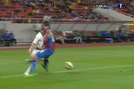 UPDATE 22:18 O nouă eroare foarte mare făcută de Sebastian Colțescu. Centralul partidei a acordat henț la o alunecare făcută de Alin Toșca, însă reluările au arătat că fundașul Stelei a atins mingea cu pieptul. Boldrin a profitat de lovitura liberă de la aproximativ 20 de metri și a făcut 2-1.