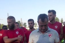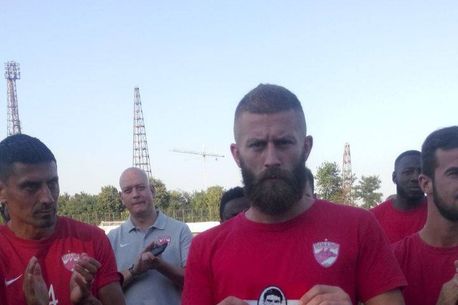 Fanii au avut pregătită și o surpriză pentru jucătorii lui Mircea Rednic. Unul dintre liderii galeriei „câinilor” i-a înmânat antrenorului lui Dinamo banderola pe care Vojnovic o va purta în derby-ul cu Steaua, chipul lui Cătălin Hîldan fiind imprimat pe aceasta.