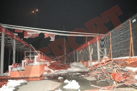 Copertina construită de firma lui Vasile Turcu la tribuna a doua a stadionului lui Dinamo pentru a proteja de intemperii masa presei a cedat și ea sub greutatea nămeților, lăsând în urmă o imagine îngrozitoare. Totul s-a petrecut în weekend, însă chiar și după curățenia făcută de administratori era evident că situația a fost efectiv una zdrobitoare.