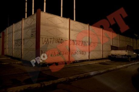 Acum fanii gălățeni au ales o nouă metodă de a protesta împotriva favoriților și au scris cu vopsea pe gardurile de la stadionul din Galați mesaje dure la adresa favorițilr: „Mercenarilor” și „V-ați vândut din cauza banilor, nu vă interesează dorința fanilor”.