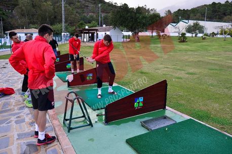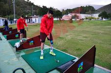 „Doamne, ce greu e! Am dat de trei ori și nu am nimerit mingea„, s-a plâns unul dintre ei. Noroc cu Antonio, fost jucător de golf, care le-a dat unele sfaturi. „Uite, țineți genunchii flexați, picioarele bine înfipte în pământ și vă întoarceți doar din șold, cu brațul stâng întins„, a spus acesta într-o română aproximativă. E căsătorit cu o fată de pe plaiuri mioritice și astfel se explică faptul că știe limba noastră. Are și un băiețel de 4 ani, care e deja fan al echipei Dinamo. „Cel mai bun prieten al meu, Llorin, a jucat în aceeași echipă cu dinamovistul Cătălin Munteanu, la Salamanca„, a explicat Antonio.