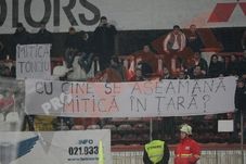 La pânza cu inscripția „Cine e pentru noi Mitică în țară?”, au apărut din peluză mai multe răspunsuri: „Tarky”, „Nikita”, „Tonciu”, „Cruduța”.