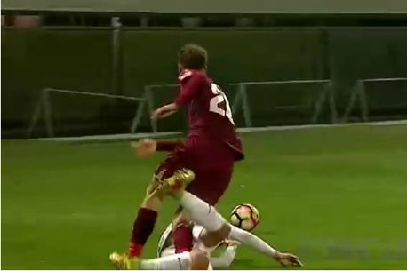 Piciorul lui Deac a avut de suferit, după ce, la un duel corp la corp cu Ceccarelli, italianul a căzut cu toată greutatea corpului peste genunchiul fotbalistului de la Voluntari, iar imaginile ne-au arătat cât de gravă poate fi accidentarea suferită.