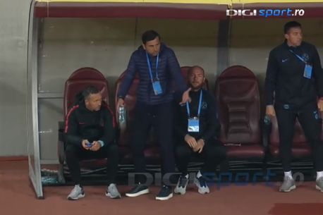 A fost momentul în care Dică, simțind că victoria a fost foarte aproape de a-i scăpa printre degete, a aruncat o sticlă de apă, care a ricoșat în piciorul lui Mihai Stoica. Imediat, oficialul FCSB a ridicat ambele mâini și a strigat în direcția antrenorului. Faza nu a degenerat, iar Dică nu a reacționat.