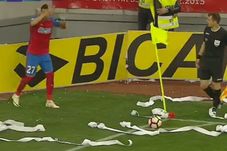 Ultrașii lui Dinamo au făcut din nou dezastru. Boldrin a fost lovit de mai multe ori de obiecte aruncate din peluză, în momentul în care se pregătea să bată o lovitură de colț. Hațegan a oprit meciul pentru câteva momente, însă incindentele n-au încetat.