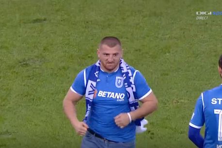 Luptătorul de K1 născut la Iași a îmbrăcat tricoul deținătoarei Cupei României, a pus fularul alb-albastru la gât și a dat lovitura de start de a meciului din Bănie, în aplauzele suporterilor olteni.
