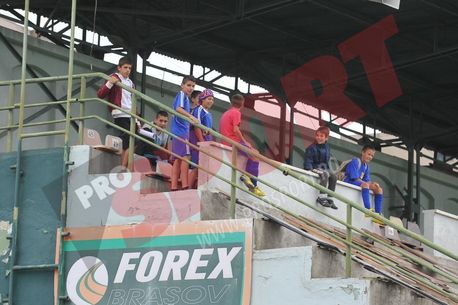 Antrenamentul „câinilor” a fost urmărit din tribune de câțiva copii, unul dintre acești având legat la cap un fular cu însemnele Stelei.