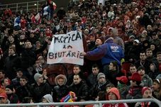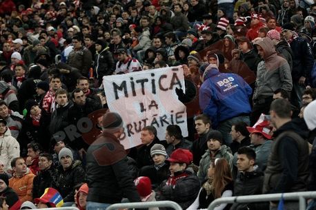 Pe lângă această doleanță, suporterii „câinilor” nu au uitat să protesteze și la adresa șefilor fotbalului românesc, Mircea Sandu și Dumitru Dragomir, afișând, printre altele, și un banner pe care stătea scris „Mitică, la brutărie!”. În acel moment, agenții de securitate au intervenit pentru a confisca pânza, iar între fanii și oamenii de ordine a izbucnit un mic clinci, ce a amintit de cel de la meciul România-Uruguay de miercuri. Din fericire, spiritele s-au calmat rapid, iar fanii au rămas în tribune, nefiind nevoie de o evacuare în forță ca în urmă cu 3 zile.