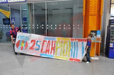 Un singur fan i-a așteptat pe steliști la aterizarea pe aeroportul din Cluj, dar micul admirator i-a copleșit pe campioni. Băiețelul de 6 ani a venit însoțit de tatăl său cu un banner pe care scria campionii și cifra 25, alături de care era desenată sigla Stelei. Copilul a desfășurat banner-ul, ajutat de tatăl său, în momentul când steliștii au apărut pe aeroport și s-a ales cu fotografia vieții.