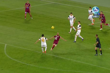 În minutul 25 al partidei dintre Universitatea Cluj și CFR, Gabi Mureșan a căzut în careu după un contact cu Adrian Cristea, iar arbitrul Alexandru Tudor a acordat penalty.