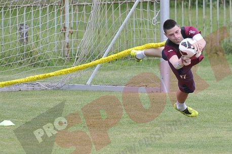 Cosmin Began, juniorul din poarta clujenilor, reține o minge. Tânărul portar va fi a treia opțiune pentru acest post