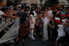 cele de pe stadioane și au trecut printre fanii adunați în piață.