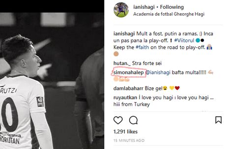 „Mult a fost, puțin a rămas. 🙂 Încă un pas până la play-off”, a scris Ianis Hagi pe contul său de Instagram. Simona Halep, care de pe 26 februarie va urca din nou în vârful clasamentului WTA, i-a replicat „Baftă multă!!!!!”.