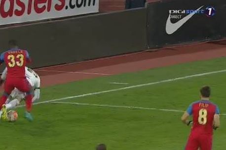 Boldrin a căzut, a încercat să se ridice, dar a fost din nou lovit de Varela, de această dată peste piciorul stâng. Însă nici tușierii, nici Radu Petrescu n-au semnalizat vreo infracțiune.