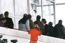 Golul lui N’Doye a declanșat fiesta în tabăra vasluienilor. Imediat după reușita senegalezului, Marian Popa, prieten apropiat al lui Adrian Porumboiu și director la una din firmele acestuia, a spart unul din geamurile lojei (foto) unde stăteau oficialii oaspeților. Amicul patronului vasluian a fost luat de Poliție și probabil va fi obligat să plătească daunele produse.