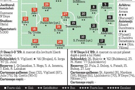 De partea cealaltă, deși au beneficiat și de aportul “suspendaților" Paraschiv și Syekelz, oțelarii s-au rezumat doar să-și betoneze apărarea, fără a ridica prea mari pretenții în atac.