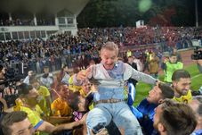 A fost momentul în care în scenă a intrat și patronul Gigi Becali, care s-a comportat ca un jucător. În timp ce tehnicianul Costel Gâlcă oferea declarații după meci, Becali a mers între jucători și a fost purtat pe brațe de aceștia. Un cadru văzut des pe terenurile de fotbal, dar în care suntem obișnuiți să-i vedem pe antrenori.