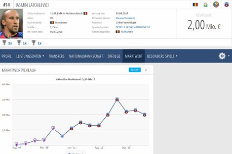 2 milioane de euro este în acest moment cota de piață a lui Latovlevici, potrivit site-ului de specialitate transfermarkt.de. În urmă cu un an, fundașul stânga valora 3 milioane. El este, în acest moment, singurul titular din primul „11” al Stelei a cărui cotă este în picaj
