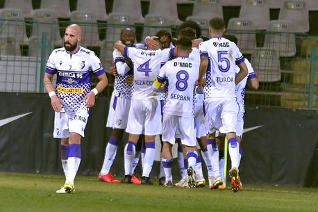 Sebastian Mladen, Kehinde Feyi Fatai si Aurelio Miguel Arias Jafar in meciul de fotbal dintre FC Arges si Farul Constanta, contand pentru Liga 1 Casa Pariurilor, desfasurat pe Stadionul Nicolae Dobrin din Pitesti, duminica 17 octombrie 2021. © FOTO:Razvan Pasarica/SPORT PICTURES