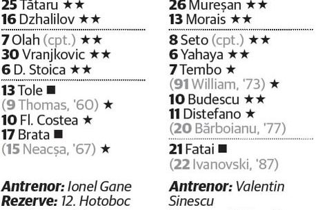 Rezerve: Gavrilaș, Bărboianu, Mățel, Bukari, Găman, William, Ivanovski