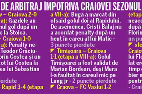 Craiova a pierdut nu mai puțin de 11 puncte pe mâna arbitrilor. E