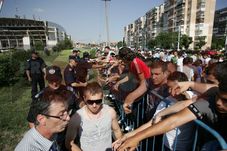 „Mai bine puneau bilete în vânzare și știam un lucru. Era mult mai bine decât să ne înghesuim pe aici, în căldura asta infernală”, a spus un suporter. La ora 17, așa cum s-a anunțat, au început să se distribuie invitațiile gratuite, de împărțirea lor ocupându-se inclusiv jandarmii, pentru a putea face față fanilor dezlănțuiți.