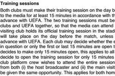 Articolul 2, punctul 7, invocat de UEFA în comunicat ar sancționa nerespectarea Regulamentului în ceea ce privește interivurile de la finalul meciului, însă Steaua s-a conformat la acest capitol, trimițându-l pe Latovlevici la zona mixtă și pe Reghecampf la conferința de presă. Cel mai probabil, UEFA a făcut referire la articolul 2, punctul 3 (foto mic, stânga), acolo unde se penalizează refuzul de a organiza o conferință de presă înaintea partidei. „Fiecare club trebuie să organizeze o conferință de presă în ziua ce o precede pe cea a meciului. Ambele conferințe trebuie aranjate de cluburi cu UEFA pentru ca presa să poată asista la ele”, se arată la acest punct. Aceasta este abaterea comisă de campioana României, club care a negat obligativitatea organizării unei conferințe pre-meci atât prin vocea managerului huligan, cât și prin cea a antrenorului Reghecampf.