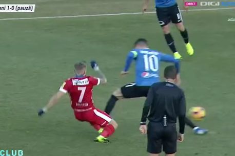 Ianis a ajuns târziu la întâlnirea cu balonul, dar l-a călcat pe Golofca, chiar în fața lui Hațegan. Arbitrul FIFA a scos cartonașul galben, spre nemulțumirea celor de la Botoșani, care au solicitat eliminarea lui Ianis.