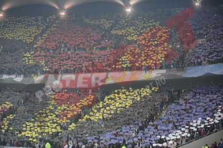 Fanii steliști au pregătit așa cum se cuvine derby-ul cu Dinamo, peluzele Sud și Nord colorându-se în roșu și albastru înainte de startul partidei.