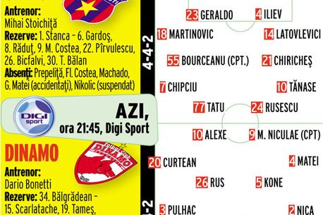 Pentru Steaua, partida contra „câinilor” este decisivă în lupta pentru titlu. În tabăra cealaltă lucrurile sunt mai liniștite, presiunea rezultatului lipsind cu desăvârșire. Drept urmare, Stoichiță nu are de gând să riște nimic și vrea să înceapă meciul cu doi „închizători” sacrificând astfel un jucător de creație. Lângă căpitanul Bourceanu va lua loc Vlad Chiricheș, fotbalist care a făcut o impresie foarte bună ca mijlocaș central, iar cuplul din apărare va fi același din ultimele partide: Geraldo – Iliev.
