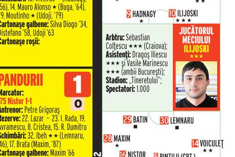 Brașovul lui Șumudică merge cu pieptul în față în Liga I. Și, fără îndoială, cel mai mare merit îl are Șumudică, antrenorul cu gesturi de ultras, dar cu ochi de meseriaș. Păcat pentru el și pentru echipă că stadionul „Tineretului” nu se mai umple ca altădată, ieri ajungând maximum o mie de oameni la întâlnirea cu revelația turului, Pandurii. Ar fi avut ce vedea, dacă s-ar fi mobilizat mai mulți. Spre exemplu, primul gol al sezonului de primăvară, autor Ilijoski, cu un șut din careu, după ce a evitat elegant un adversar (13). Macedoneanul decar e noul pariu al lui Șumi și, la ce a arătat ieri, revine în actualitate ideea că antrenorul chiar are ochi!
