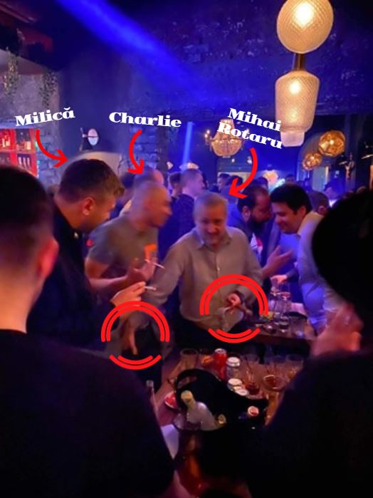 Imaginea a fost surprinsă sâmbătă seară, cu o zi înaintea meciului, în clubul Acsa din Craiova. În poză mai apare și Emil Pieleanu, zis Milică, delegatul craiovenilor.