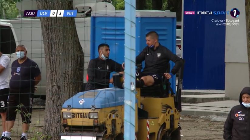 Cei doi au părăsit zona terenului de antrenament din Bănie, dar au urmărit în continuare partida și au mai discutat despre acesta. Vlad Achim s-a urcat la volanul unui utilaj aflat în apropiere și a oferit imaginea amuzantă a zilei.