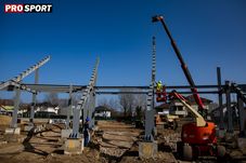 Am găsit peste 50 de muncitori, pe mai multe fronturi de lucru. La tribuna nouă era în plina desfășurare montarea grinzilor din partea superioara, în viitorul apropiat fiind așteptați și ultimii stâlpi, cei mai înalți, de 16 metri, care vor susține acoperișul. În câteva zile va începe montarea instalației de nocturnă.