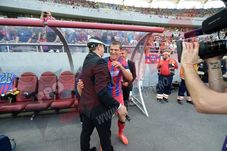 Cei doi au luat loc în tribuna oficială a stadionului, alături de foștii coechipieri menajați pentru acest meci, iar atmosfera a fost una de vacanță. Pintilii a venit însoțit de copilul său, căruia îi dădea să mănânce piure, Latovlevici își făcea selfie-uri, iar Bourceanu și Chiricheș au fost aplaudați la scenă deschisă de fanii Stelei. Fostul căpitan al Stelei chiar a fost comparat de suporteri cu omologul său de la Chelsea, John Terry, care în urmă cu doi ani, la finala Champions League, a ridicat trofeul îmbrăcat în echipamentul de joc, deși fusese suspendat pentru finală.