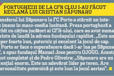 Chiar dacă ar face obiectul celui mai scump transfer care a părăsit Liga I, după spusele oficialilor giuleșteni, Cristian Săpunaru este același tip deschis și mereu pus pe glume. Tergiversarea semnării contractului cu FC Porto nu-l afectează prea mult pe „Săpun". Fundașul nu a părut prins în vârtejul fluxului de informații care îl dădeau ca și transferat la campioana Portugaliei. Deși știe că este la un pas de Liga Campionilor, Săpunaru își vede în continuare de treabă și trage tare la antrenamentele conduse de Peseiro.