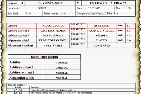 Interesant este că în regulamentul arbitrilor, la articolul 63, alineatul „B”, se scrie că „retrogradarea unui arbitru se va face dacă acesta însumează mai mult de zece etape în care a fost reținut de la delegări”, dar în cazul arbitrilor FIFA retrogradarea se materializează în scoaterea din rândul celor cu ecuson internațional. Speriat de această perspectivă, Avram s-a adresat în două rânduri CCA, căreia i-a cerut, printre altele, motivarea deciziilor, dar și rapoartele ședințelor în care a fost sancționat și stenogramele acestora. CCA nu i-a răspuns, dar a reacționat. Astfel, abia săptămâna trecută, la mai bine o lună de la meciul Sibiu – Chiajna, observatorul Vasile Curt a primit un e-mail în care i se cere să-și reconsidere poziția referitoare la arbitrajul lui Avram. Forțat de împrejurări, acesta a răspuns comisiei vineri.