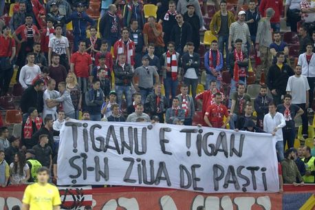 Astfel, în peluza dinamovistă a fost afișat un banner al cărui conținut nu are nicio treabă cu fotbalul, semn că nu doar „sportul rege” autohton a rămas cu mulți ani în urma celui civilizat, dar și mentalitatea celor din tribune. „Țiganu’ e țigan și în ziua de Paște” a fost mesajul arborat în PCH, unul care s-a vrut probabil amuzant.