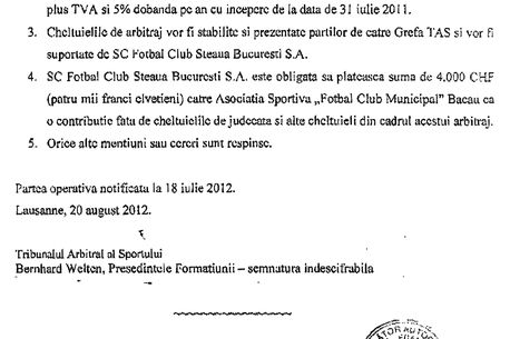 Ei bine, după ce pe data de 18 iulie Tribunalul Sportiv de la Lausanne a dat dreptate clubului FCM Bacău în conflictul cu Steaua în cazul Baciu, iar Gigi Becali a zis că nu o recunoște, zilele trecute la FRF a ajuns redactarea oficială a deciziei TAS. Totodată, acest document a poposit și în birourile celor două cluburi care s-au aflat în conflict.