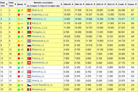Pornită de pe locul 22 la începutul sezonului, Liga 1 a urcat până pe 19 cu ajutorul celor 6 puncte strânse în mare măsură de Steaua și CFR (Dinamo, Rapid și Vaslui au contribuit extrem de puțin la coeficientul de țară) și avea nevoie de un salt de încă cel puțin șase locuri (aproximativ 7 puncte) pentru a spera ca formația care va câștiga titlul în sezonul 2013-2014 să joace direct în grupele UCL.