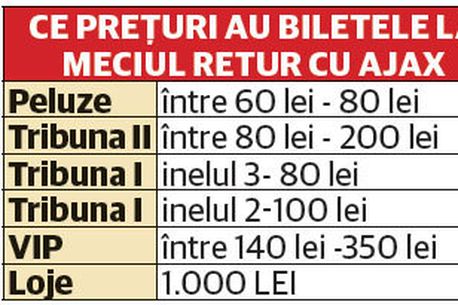 Unii dintre suporteri, în special cei din provincie, au criticat conducerea clubului pentru prețurile mari fixate pentru bilete. Cel mai ieftin dintre ele costă 60 de lei. „Cu drum cu tot, trebuie să cheltuiesc cel puțin 200 de lei ca să văd meciul”, spune unul dintre fanii Stelei. „Când ai copii de crescut e mai greu să le iei de la gură ca să mergi la meci. Cred că sar peste jocul acesta”, a spus un alt nemulțumit. Unul dintre manageri le-a ripostat că biletele pentru jocul retur cu Ajax sunt mai scumpe ca de obicei pentru că și cheltuielile privind organizarea meciului sunt mai mari. „Știu că prețurile sunt mai mari decât cu Twente, dar și cheltuielile sunt uriașe. Doar charterele ne costă 200.000 de euro”, a spus acesta pe pagina sa de facebook.