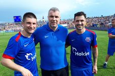 Andrei Cristea împreună cu Cosmin Olăroiu și Mirel Rădoi, la un meci demonstrativ