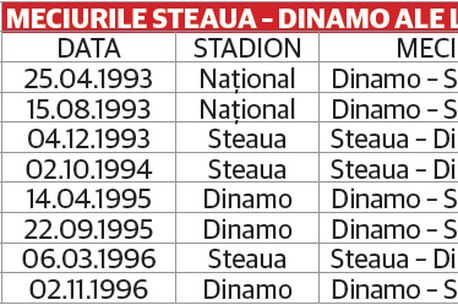 Nu. Nu am pierdut niciodată cu Dinamo. Cât am fost eu pe teren pentru Steaua, echipa din Ștefan cel Mare nu a reușit să ne învingă. Și sunt mândru de acest lucru. Ba mai mult, am luat doar patru goluri în opt întâlniri cu Dinamo în campionat.