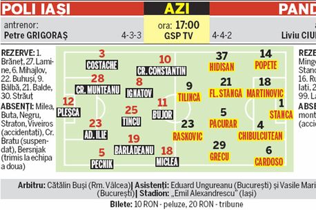 Răduță, Cesinha, Cătălin Păun și J. P. Pinto nu au participat la