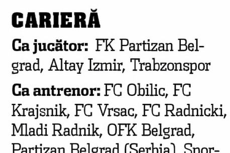 Eu am mai fost aici pe când jucam la Partizan Belgrad și la echipa națională. Nivelul la voi a crescut foarte mult în ultimul timp și spun asta în cunoștință de cauză, pentru că urmăresc campionatul, la fel cum urmăresc toate campionatele puternice din Europa. De asemenea, i-am avut pe Trică și pe Florentin Petre sub comanda mea, în Bulgaria. Doi jucători foarte buni.