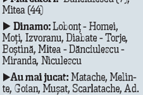 Roș-albii au înregistrat prima remiză după un șir de șase victorii. Atacul a mers din nou strună la Dinamo, dar au apărut greșelile în apărare, acolo unde Lobby a fost ezitant, iar lipsa lui Tamaș s-a resimțit. „Câinii” au mizat pe ofensivă încă din start.