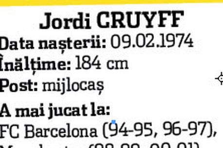 Nu poate fi însă ultima bombă. Ieri, un alt jucător cu nume și cu un CV impresionant a fost propus în birourile din Calea Floreasca, pe adresa președintelui Cristi Borcea. Este vorba de Jordi Cruyff, fiul marelui antrenor olandez Johan Cruyff.